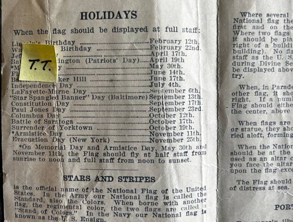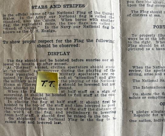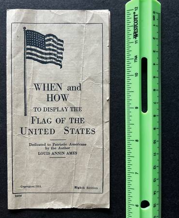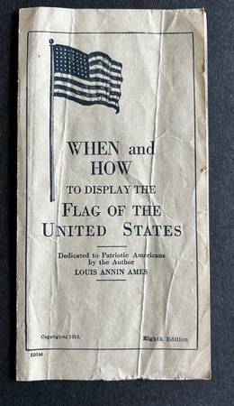 Back in 1915, Ames put out a 4-page pamphlet which included specific days the flag should be displayed; how to portray the flag; and how to salute it. The pamphlet ends with the Oral Flag Salute which is a shortened version of The Pledge of Allegiance.