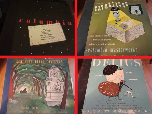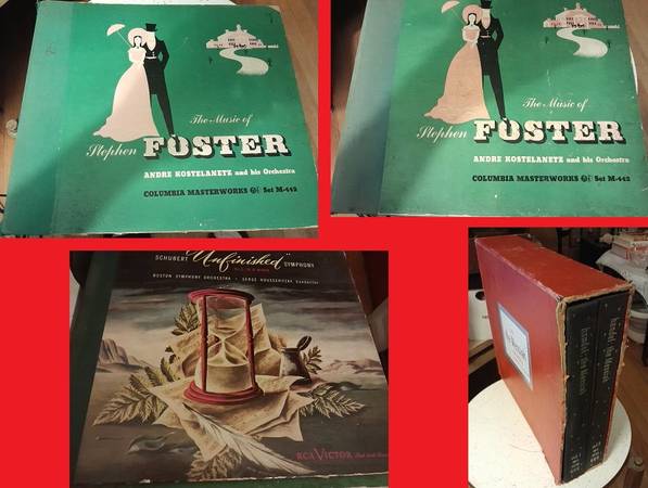 Giant lot of vintage 12 inch 78 RPM classical, jazz and show tune shellac phonograph records from the 1930's and 40's. All from my personal collection that I have had for over 30 years. The following is a list of the albums and content.