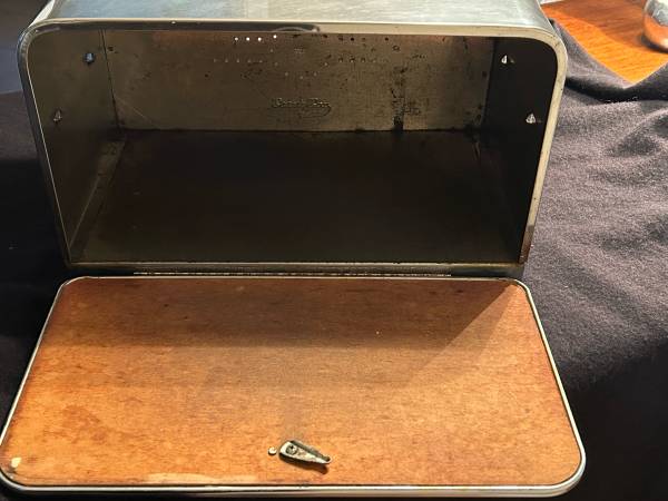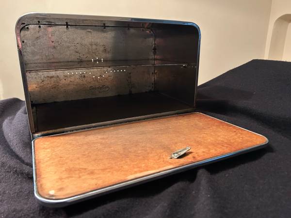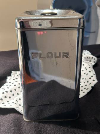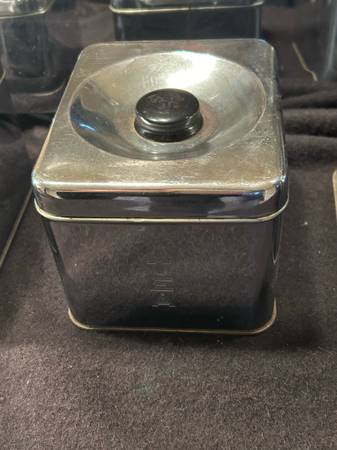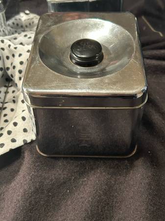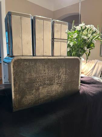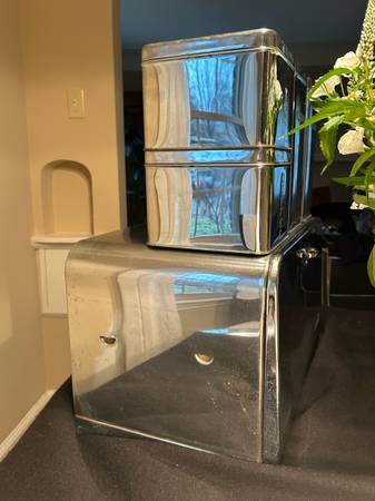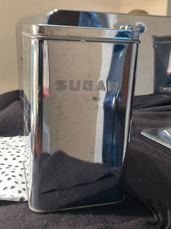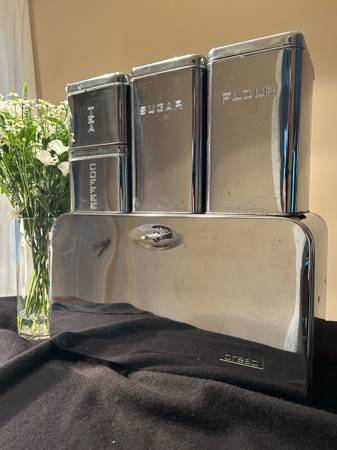 Complete set of vintage Lincoln Beautyware, chrome. 1950/1960? Either way: vintage and beautiful! Minimal rust speck (inside), two tiny dings on front of breadbox (refer to photos). Metal shelf and...
