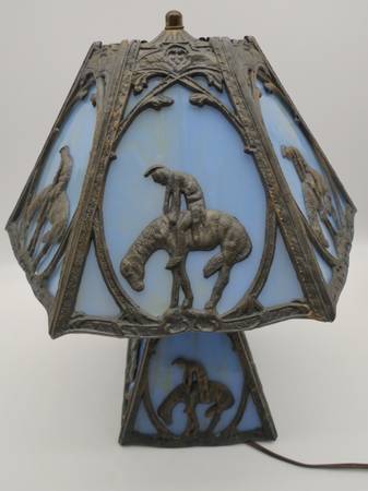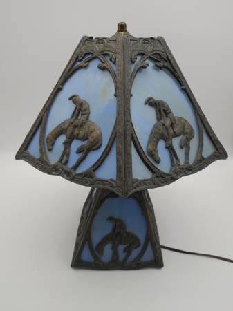 This gorgeous blue slag glass lamp is in very good condition with no chips, cracks, or breaks to the glass. It lights up 3 ways. It's in excellent working condition. Height: 18" Diameter: 16"