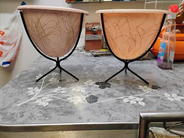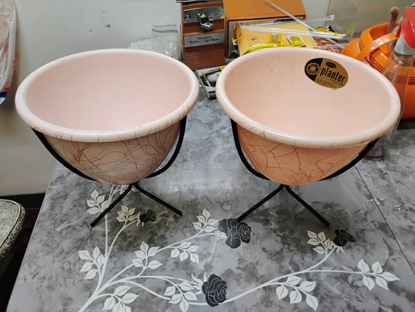 Pair of Pink NOS Plastic Tabletop Bullet Planters Tag still intact 10h 6h without stand 9d We don't text any numbers use any codes accept checks give out our number or respond to available is it...