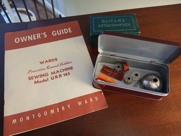 Works. It was my grandmothers. The cabinet is beautiful but does have some scratches. The machine works very well. It has many rotary attachments in original green box. They look brand new. Comes with metal tin container with a brand-new looking oil can, screwdriver and more. The Owner's guide looks brand new, but has a minor tear in it. Condition is a lot better than higher priced ones for sale. This will need to be picked up. Asking $90, BUT I WILL NEGOTIATE.