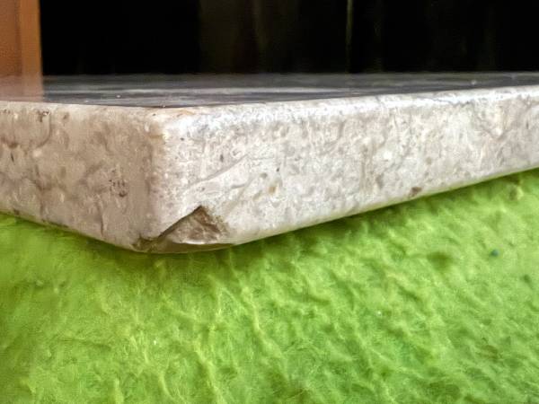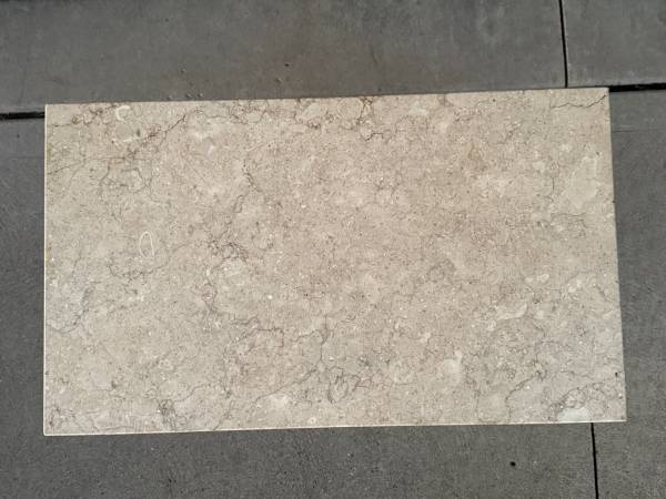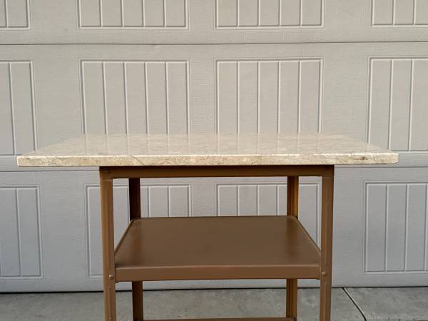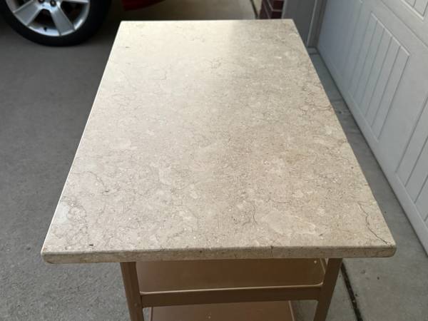 Vintage Polished Marble Slab! This is a nice piece of marble that could be used as a tabletop or repurposed in many other ways. This slab is lighter in color and is polished on the edges and top. There is a small chip on the underside of one corner; it is otherwise intact. This marble slab measures about 30" x 17.5" wide and is about 7/8" thick (please see pics). It is not attached to the cart it is resting on.