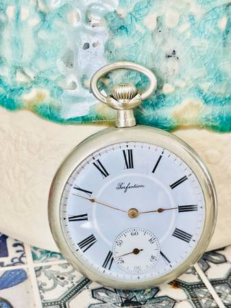 Antique Pocket Watch 1918 Perfection USA New York 16 Size Beautiful Blue Dial Mechanical Hand Winding Very Good Condition Running Shipping Available