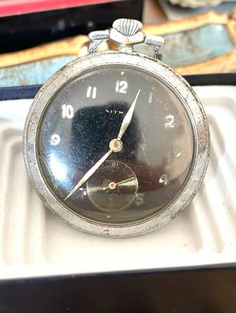 Antique Pocket Watch World War 2 German Military Deutsches Reichs Patent Stamped Black Dial Heavy Use Runs Intermittently Selling As Non Running Shipping Available