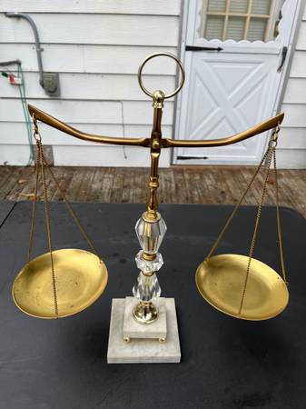 Antique vintage brass and marble scales of justice. Circa 1950s and early 1960s. measures 20 inches tall by 12 inches wide. only $65. No checks of any kind will be accepted. This is a cash only sale.