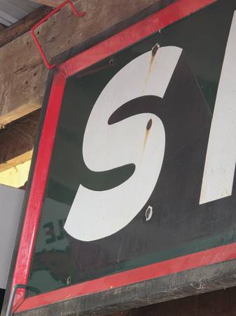 Bone original 14 foot, porcelain sign came factory in 2 7- foot sections. Never cleaned, got great look $2200