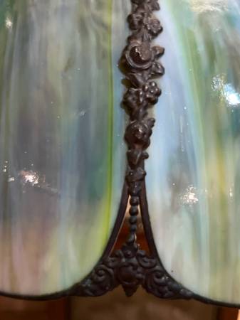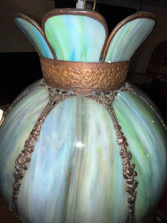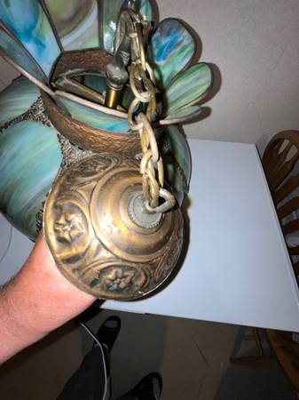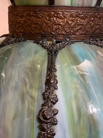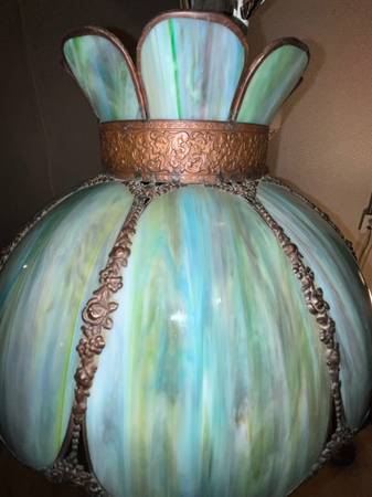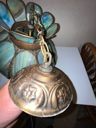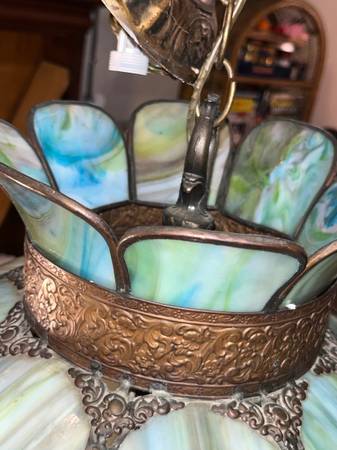 Vintage Blue/Green/Turquoise Marbled Slag Glass Hanging Victorian Style 8 Panel Light. Beautiful piece of history. Great Condition, No Cracks, Chips or Breaks. 18 inches wide.