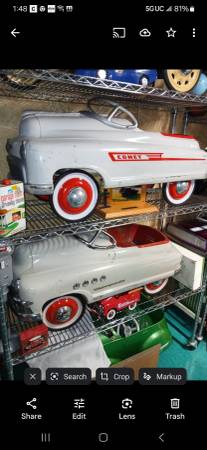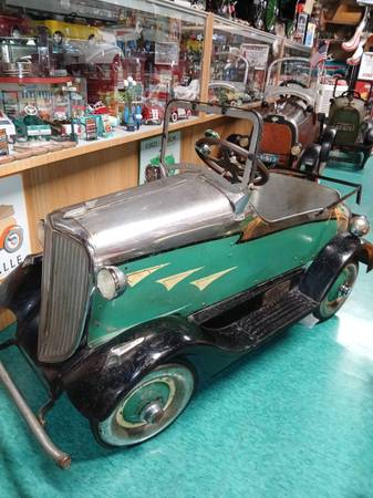 Looking for classic pedal Cars also buy damaged cars or parts . Also will consider reproductions fire trucks and cars . If you need help identifying a car or need parts info feel free to call.