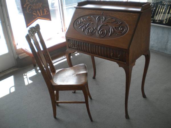Vintage Antique Early 1900's Desk with Chair Tiger Oak - $745 (Westland)