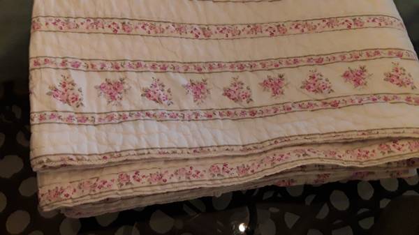 3 wire decoration -- $3 Shabby chic bed spread Queen size -- $40 2 shabby chic towels -- $20 Shabby chic café curtain -- $5 Shabby chic floor mat -- $25
