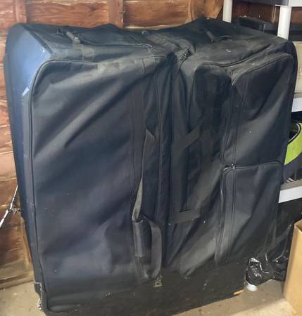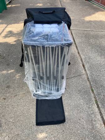 For interior or exterior event use or just for your own backyard movie theatre for the family or music venues / events. These fold open like an accordion and fold back for minimal storage space. They come in heavy duty rolling, portable bags. Approximate 8 x 10 ft, give or take, when fully open.