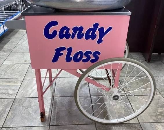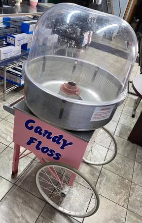 The Gold Medal The Breeze #3030 Cotton Candy Machine with Pinkie Floss Cart #3149 is a tabletop cotton candy machine designed for use in restaurants, food service, and industrial settings. The machine features a plastic bowl and operates at 3030 RPM. It is manufactured by Gold Medal, a trusted brand in the industry. The included Pinkie Floss Cart makes it easy to move the machine around.
