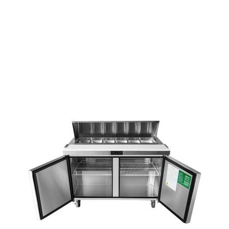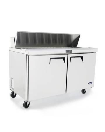 Atosa 60″ Refrigerated Sandwich/Salad Prep. Table Model: MSF8303GR 2 Doors 16 Pans of 1/6" 115V 60Hz 1PH Dimensions: 60"L x 30"W x 42"H _________________________________________ BUDGET EQUIPMENT,...