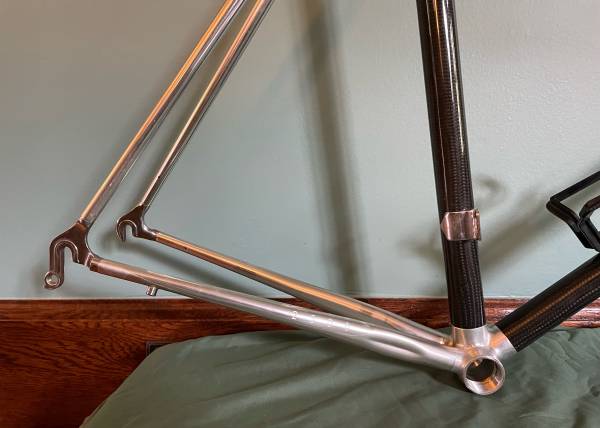 Beautiful very low mileage frame set found as part of one-owner completely original bicycle. Please see teeth on original Dura Ace 7400 crank as evidence of low mileage. No damage whatsoever to frame or forks. Threads in perfect condition. I have only washed with gentle soap and will leave to new owner to polish Aluminum if they desire.