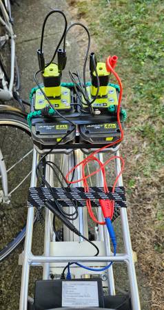 Evelo E-Bike, 700C Wheels, Nuvinci 360 Rear Hub, Needs Battery! 36V system, Nuvinci 360 rear hub. Has both pedal assist and throttle. Excellent condition! Rides like a regular bike. Good for someone 5' 9'' and up. Temporarily connected two Ryobi 18V batteries. To prove the motor functions. Will go 15-20 mph.The Ryobl batteries are not included. But I do have the original battery (non-funtional).