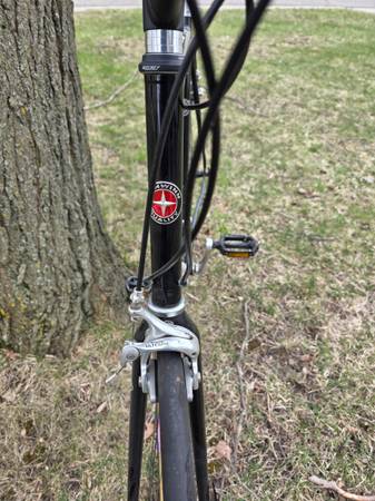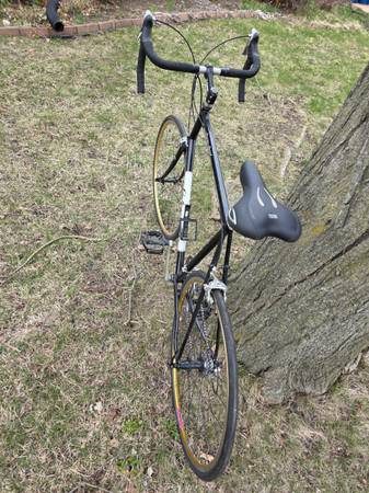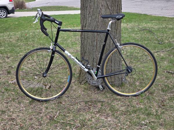 2000 Schwinn Super Sport SL with a 60cm/23" Reynolds 853 air-hardened steel frame, Time Sprint Carbon Fiber fork, full Ultegra 3x9 drive train and brakes, Ritchey Aero OCR Pro alloy wheels and Continental GP5000 28mm tires (will fit 30mm tires). This bike has a more relaxed geometry than the Peloton. Like new condition. Very light and fast. Weighs roughly 22 lbs in its present configuration. It was right around 20 lbs with an ultra-light saddle and pedals and narrower tires. I can make this available in Grand Blanc or Taylor with sufficient notice.