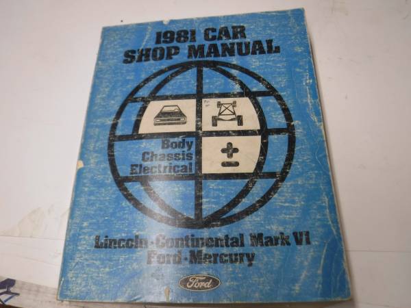 I have a 1981 FORD CAR SHOP SERVICE REPAIR MANUAL LINCOLN MERCURY CONTINENTAL MARK VI Body Chassis Electrical manual for sale. Look at the pics. Other years close are also very similar. Shipping...