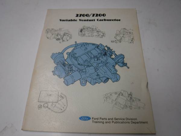 I have a 1982 FORD CARBURETOR SERVICE MANUAL 2700VV 7200VV DIAGNOSIS OPERATION ADJUSTMENT book for sale. Look at the pics. Could be good for other years. Shipping available. I can ship this Media so...