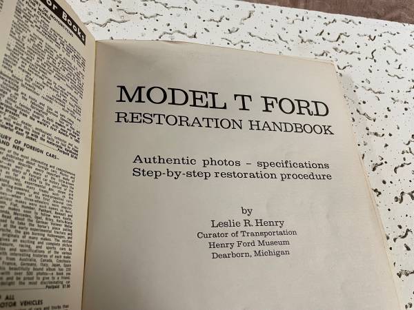 I have a Model T Ford Restoration Handbook for sale. Look at the pics. A good read with lots of pictures. 183 pages. Shipping available. I can ship it Media, it's way cheaper.