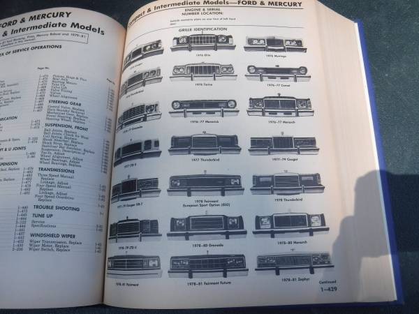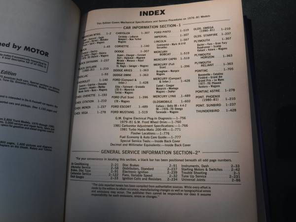 I have a Motor Auto Repair Manual 1976 -1981 Models American Motors GM Ford Chrysler and more for sale. Look at the pics. Nice shape. It will tell you everything you will need to know about your American made vehicle. Shipping available. I can ship it Media, it's way cheaper.