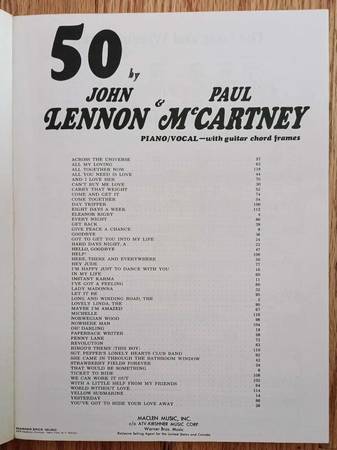 50 By John Lennon & Paul McCartney: Piano Music Vocal Lyrics with Guitar Chord Frames. Vintage 1970.