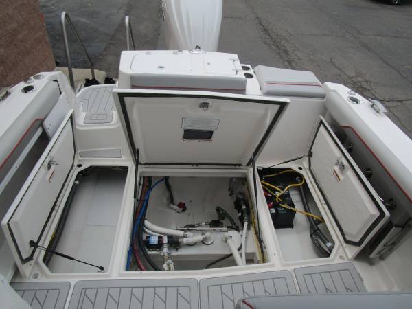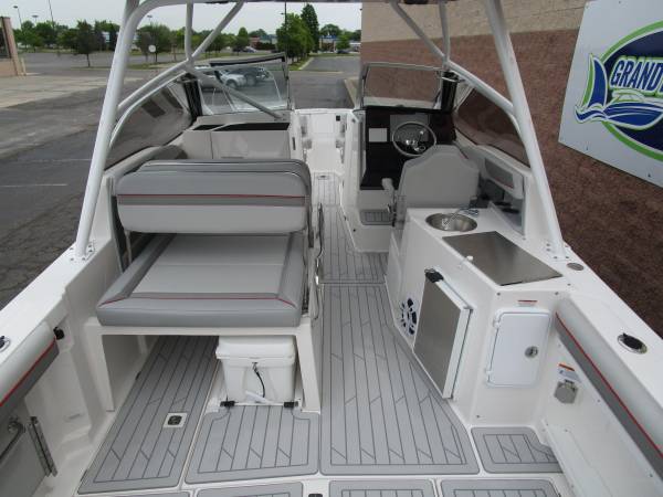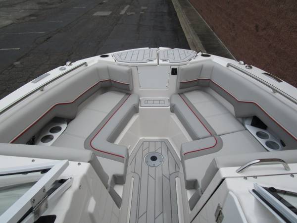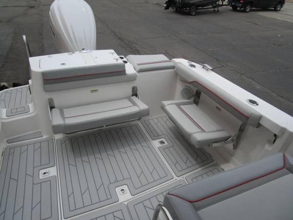 Standard features include 12” Garmin chartplotter with GPS and depth sounder, aft beverage cooler, rod holders, locking rod storage, fishbox, large under-seat cooler, retractable ski pylon, pop up stainless cleats, and abundant drink holders throughout. The S-250 DC is built in the USA, fully loaded with premium features, and ready for your next adventure.