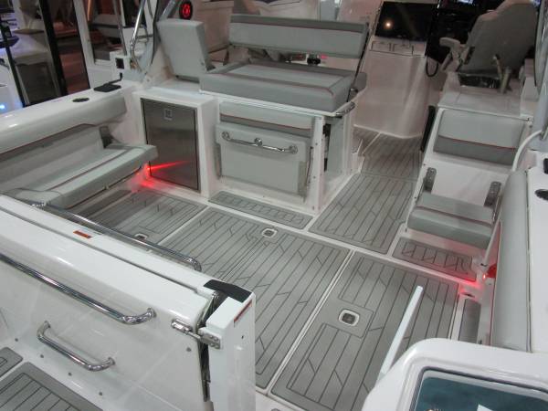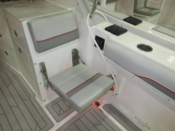 Avid sportsmen will be ready for action with a full suite of fishing features including gunwale mounted rod holders, a livewell, raw-water washdown, and available outriggers. Included EVA traction decking adds a durable and comfortable non-skid surface throughout. From a calm morning cruise, an afternoon on the sandbar, or a lively evening cruise with the lights on and stereo blazing, the S-310 SC is ready for any adventure.
