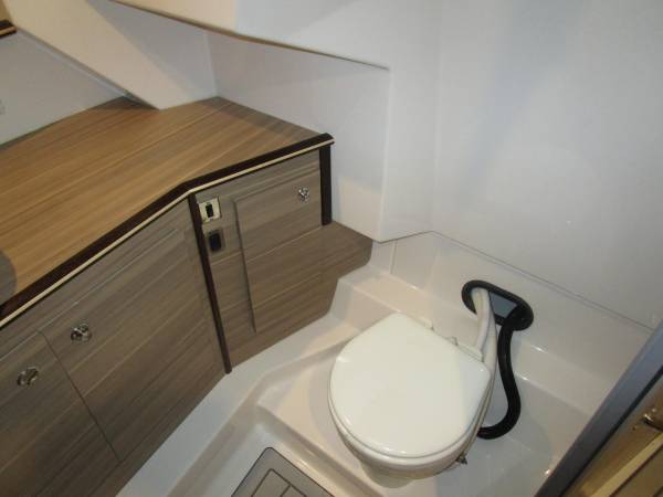• Enclosed head, marine toilet w/ holding tank, pump out