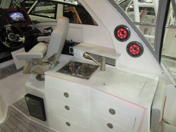 The Solara S-310 Sport Coupe takes entertainment and adventure to an entirely new level. This feature-rich 31’ coupe is designed to play, host, stay, fish and more. It’s built upon our advanced double-stepped deep-V hull with laminar flow interrupters and powered by twin Yamaha F300 outboards. True to the Solara Standard, the S-310 SC is loaded with premium features. State of the art electronics include twin Garmin 8612 chart plotters, Bluetooth enabled Fusion stereo system, auto-leveling Lenco trim tabs, bow and stern cameras, and Helm Master level 3 autopilot, all as standard equipment. Premium Lithium (LiFePO4) house batteries provide extended power while away from the dock.