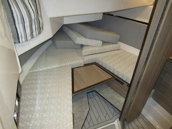 To say the S-310 SC is a master of entertainment is an understatement. Three distinct on deck social spaces and sleeping accommodations below make this sport coupe beyond ready for all-day fun. The large cockpit features seating for 6, including our fold out seats and two versatile lounges. The convertible sunset lounge can face both forward and aft, and the transforming dinette backrest flips to become a spacious lounge. In the open and airy cabin of the S-310 SC lies a full galley with ample storage, an L-shaped dinette, LED edge lighting, lighted speakers, and a wide opening sunroof.