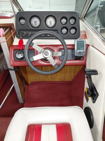 3.0 Mercrusier w/Alpha one drive low hours, Runs Great, Lot's of new Oem Part's used. (No aftermarket) New Bellow's, Shift cable, Gimble bearing, Trim/limit switches. New oil, Water pump in outdrive, Newer Lawrence fish finder/gps, Boat has a storage cover & bimini top Boat is water ready.