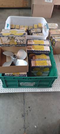 Boat Propellers, NOS, Vintage, Outboard Motor New Old Stock Aluminum, Brass, Bronze 2,3,4 Blade Right Hand and some Left Hand propellers (116) Propellers Fits Champ, Chrysler, Corsair, Elgin, Elto...