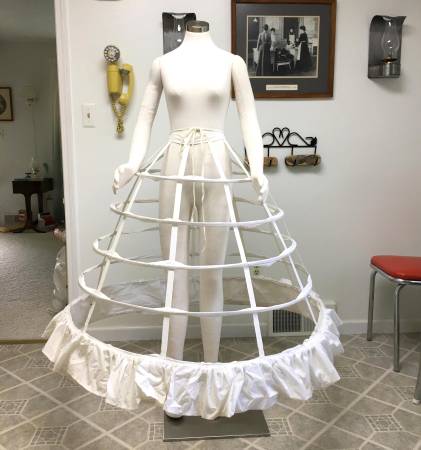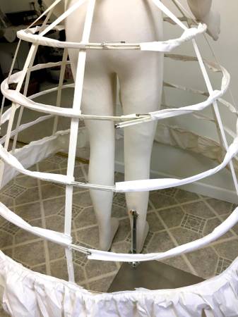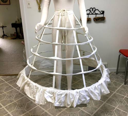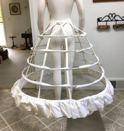 Civil War/Renaissance Large Cage Crinoline Hoop Skirt - This hoop skirt ties around the waist so is very flexible for waist sizing. It is approximately 173" circumference/47" diameter at the moment, but I only pinned the boning closed so they can be made a bit larger or smaller. $75