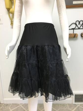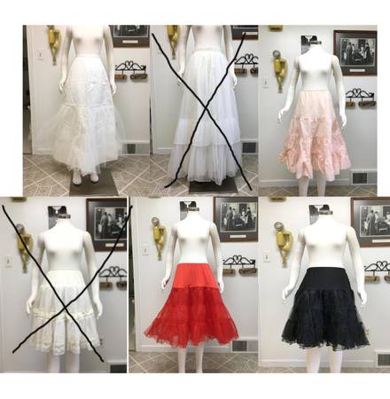 Half & Full Vintage & Modern Petticoats/Crinolines - The white and pink petticoats are all vintage. The red and black ones are modern ones I ordered from Amazon. All have elastic waists except for the one full length white one. That has a fixed waist that hooks in the back. $10 each