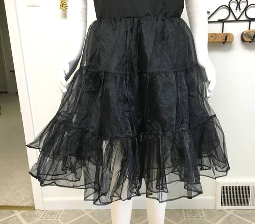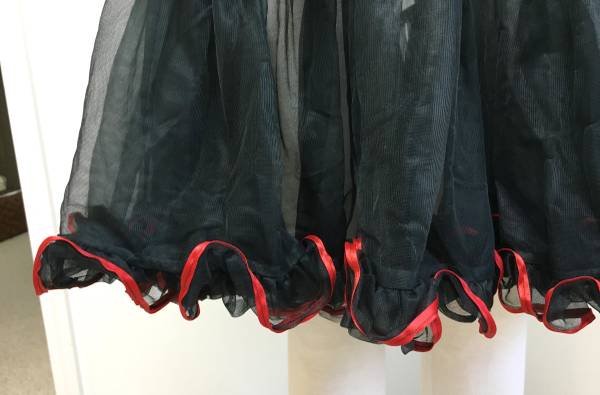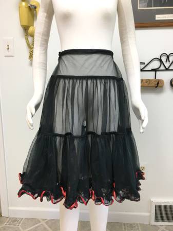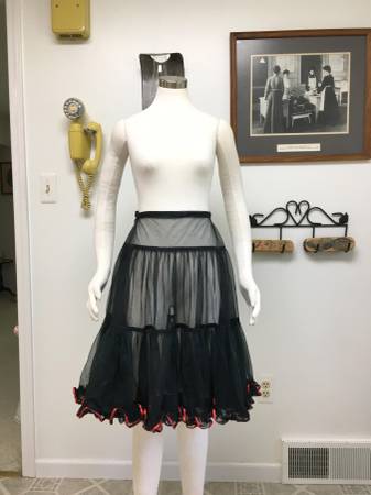 Petticoats/Crinolines - Vintage Half Slip & Modern Full Slip - I have a lovely vintage chiffon half slip petticoat with red trim. In excellent condition, but does need new elastic in the waist. The full length light blue has been sold. The full petticoat slip is a newer item that I bought off Amazon. It is a Grace Karin brand and is size XXL. $15 each