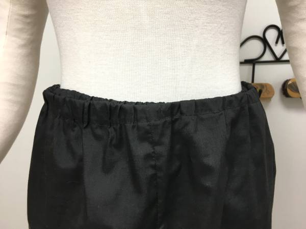 Unisex Black Poly/Cotton Renaissance/Mediaeval/Halloween Long Pants - This is a pair of plain renaissance style pants that will be good for either the festival or Halloween. Would be great for a pirate costume. The waist is elastic and 32" (can be made larger if you add to the elastic), hips are 48" and length is 39" from the waist. I would call these a medium to large.