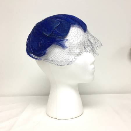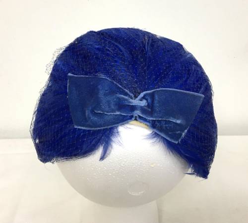 Vintage 1950's Royal Blue Feather Ladies Hat with Netting - It has royal blue feathers and bows covering the hat with blue netting over that. In fantastic condition. Made in the USA and has a Union label.