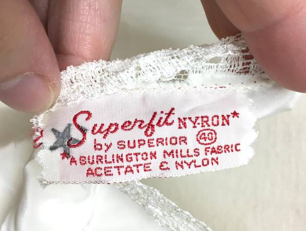 Vintage "Superfit" Woman's Full Slip by Superior - This is a very lovely slip with a lace bodice and ruffled chiffon edging the top and bottom. I see no rips or tears, but there are a few spots on the front that may or may not come out. Made by "Superior" and is a size 40.