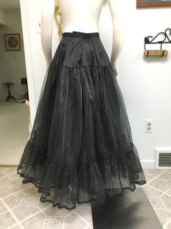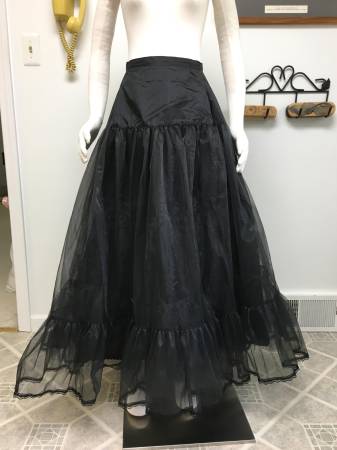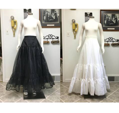 Wedding and Ball Gown Crinoline Petticoats - The white petticoat has a wide elastic high waist and zips up the back. The waist is approximately 26". The black one is absolutely stunning. It closes with Velcro in the back. $20 each