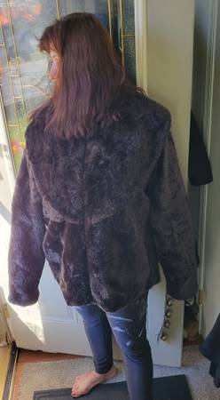 Keep warm this season with this beautiful faux Mink fur coat which has high collar and deep pockets!