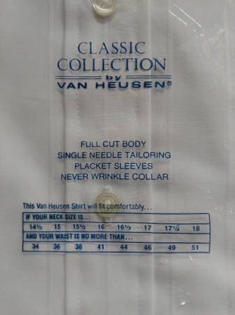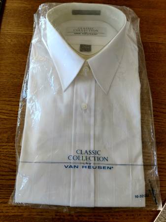 Man's Van Heusen Long Sleeve Dress Shirt - Size 16-32/33 New in original packaging - Never opened Classic Collection Full cut body Single needle tailoring Placket sleeves Never wrinkle collar