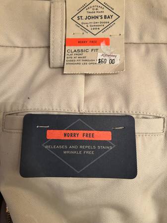 NEW w/ tags. Size 38x32, Classic Stone, 100% cotton, Worry Free, Wrinkle Free, Classic Fit