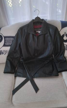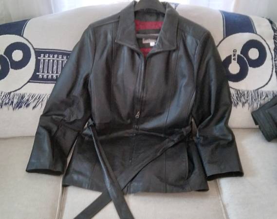 Leather Coat Jacket, Women’s Croft and Barrow, Size Large. Zipper with belt. - $30