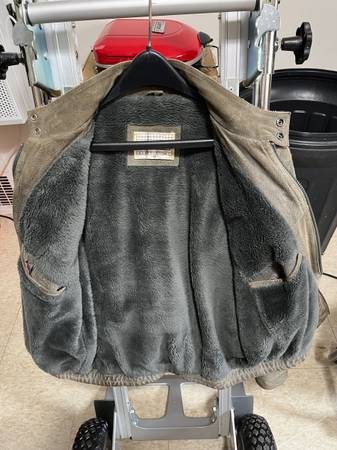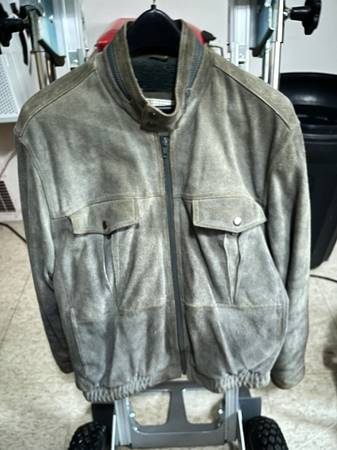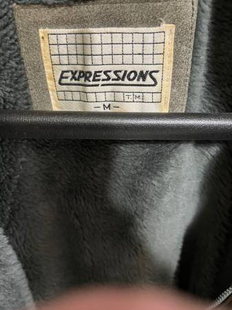 Expressions brand suede leather jacket. Size medium, Sherpa fleece lined in the torso, and the sleeves are satin lined. A really nice jacket, high-quality in every way. Only $89. No checks of any...