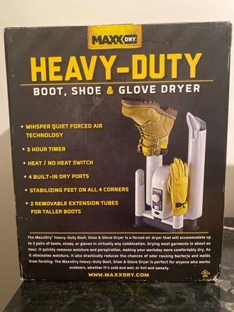 100% brand new I purchased for myself a couple of years ago for $69.99 plus tax was Christmas gift for myself no longer need the Maxwell shoe/glove dryer due to wrongfully firing for being pro union at Amazon Dtw1 Romulus ,Mi need extra cash only please unless you have Chime. Still sealed has never been opened. I originally paid 69.99+ tax from Bed Bath & beyond.