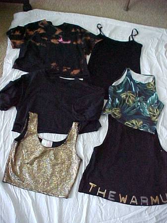 Collection of six women's tops in various styles and colors. All size S, younger person style (teen through 30s), short top, one black camisole. Located in Wayne off Michigan Ave between Merriman and Venoy Roads. If interested, state approximate pickup time and I will get back with you. Looking for FIRST taker.
