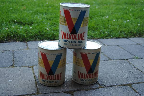 3 old full Valvoline oil cans 10W-20W-40 All Climate Heavy Duty Best offer