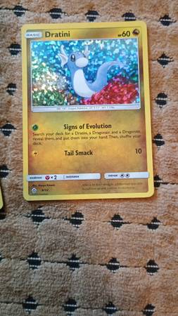 I have 2 Pokemon Cards. Pikachu, pika Draw, quick attack. Asking $30 or make offer. Dratini, Signs of Evolution, Tail Smack. Mint shape.