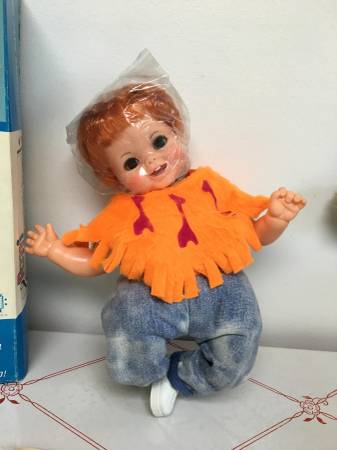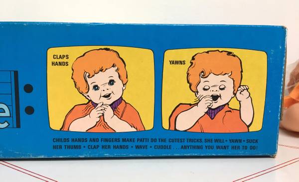 Rare Vintage 1970 Ideal "Patti Partridge" Doll - What a rare find this is. Tracy Partridge's "Patti Partridge" doll from the "Partridge Family" show. You can tell she's never been played with because she still has the plastic taped over her head. When you reach under her top in the back, you put your fingers in her arms to make them move. There is also a lever in the back that opens and closes her mouth to make her yawn or suckle her thumb. She is approximately 16" tall. Model #0543-9. Includes her original box and directions. $250